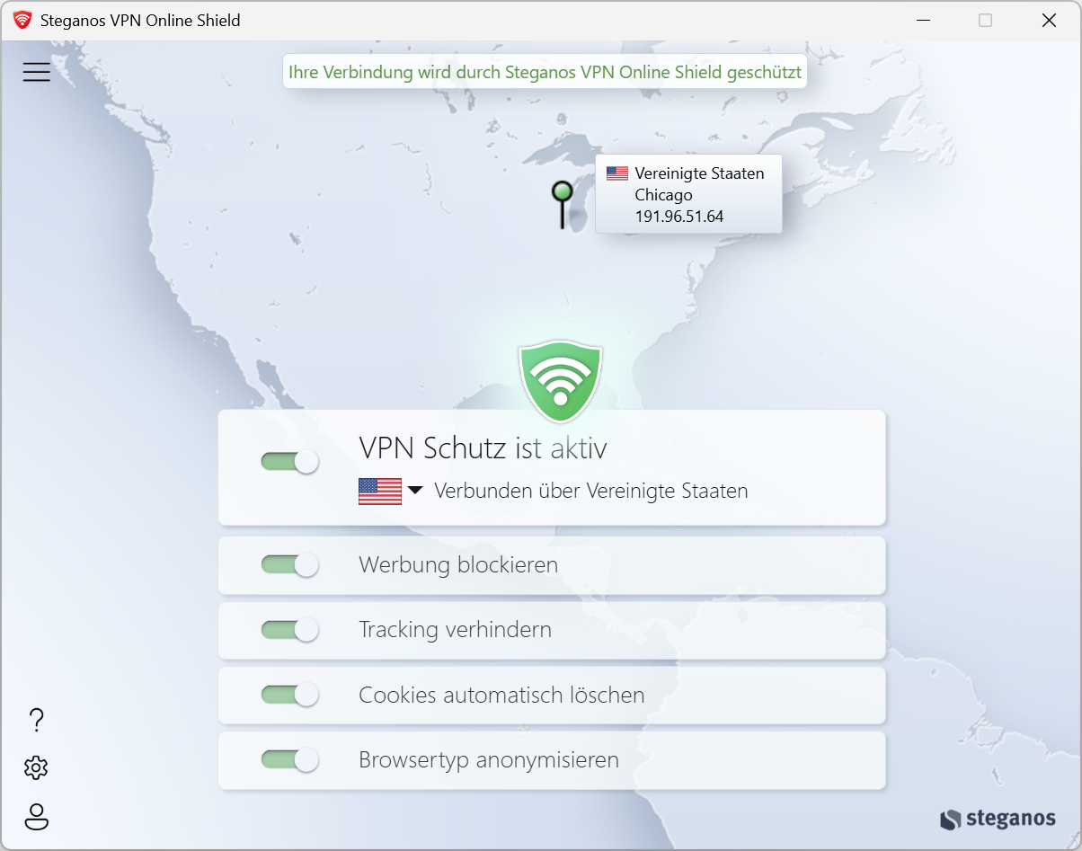 Im Gegensatz zu anderen Programmen schützt Steganos VPN Online Shield Ihre IP-Adresse nicht nur im Browser, sondern auch bei Downloadern.